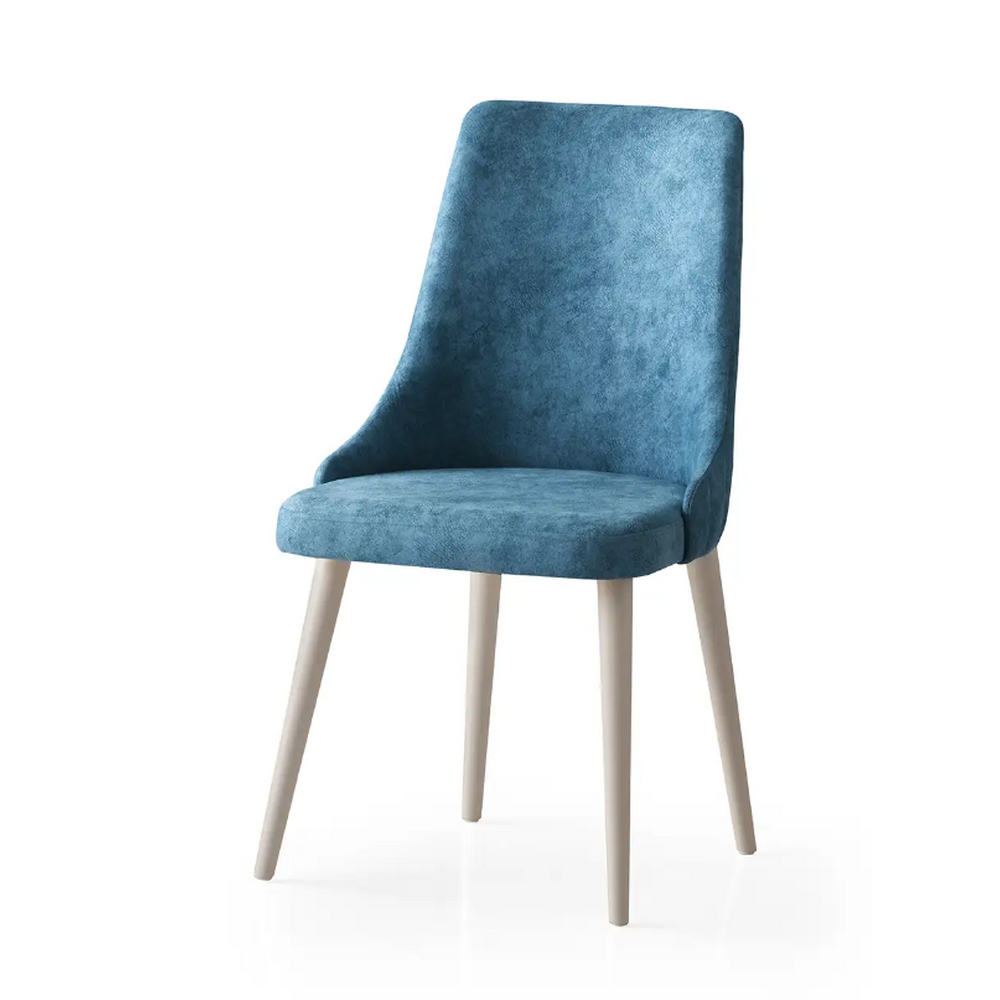 Scaunul Sahra este un scaun tapițat turcoaz, cu picioare și