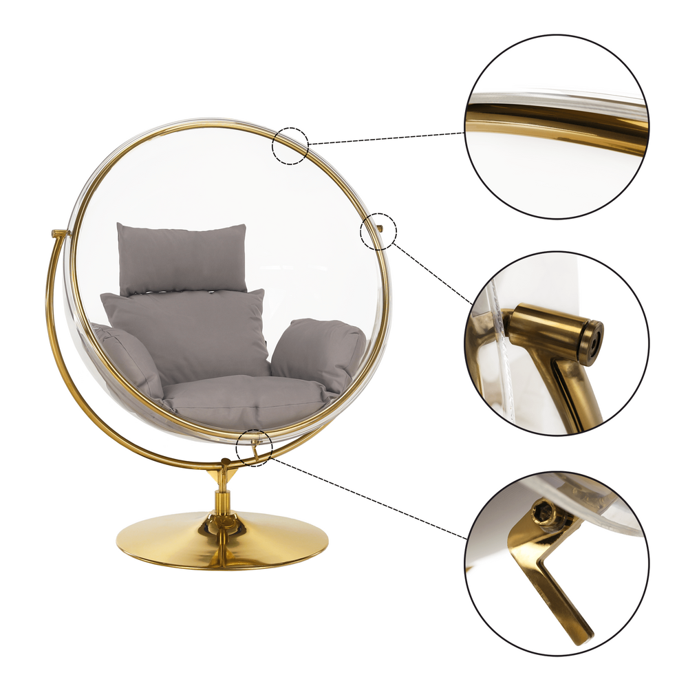 Scaun suspendat cu suport, transparent/ auriu/ gri, BUBBLE NEW TIP 2